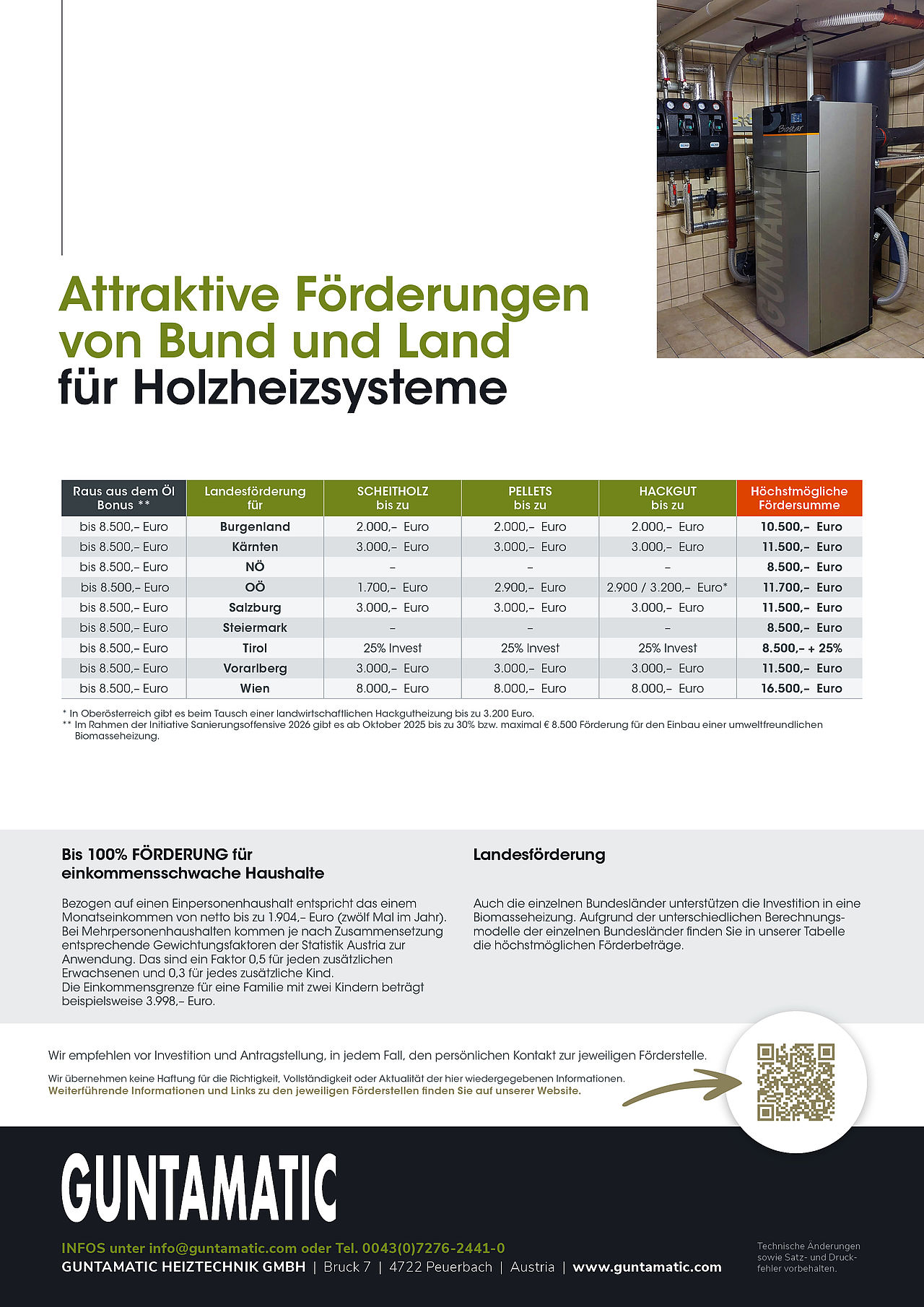 Besonders attraktive Förderungen für den Austausch fossiler Heizungen auf CO2-neutrale Holz- und Pelletheizungen gibt es nun auch wieder in Österreich. Mit max. 30 % bzw. € 8.500,- vom Bund sowie zusätzlichen Landesförderungen können so bis über € 16.000,- bei einer Umstellung gespart werden!