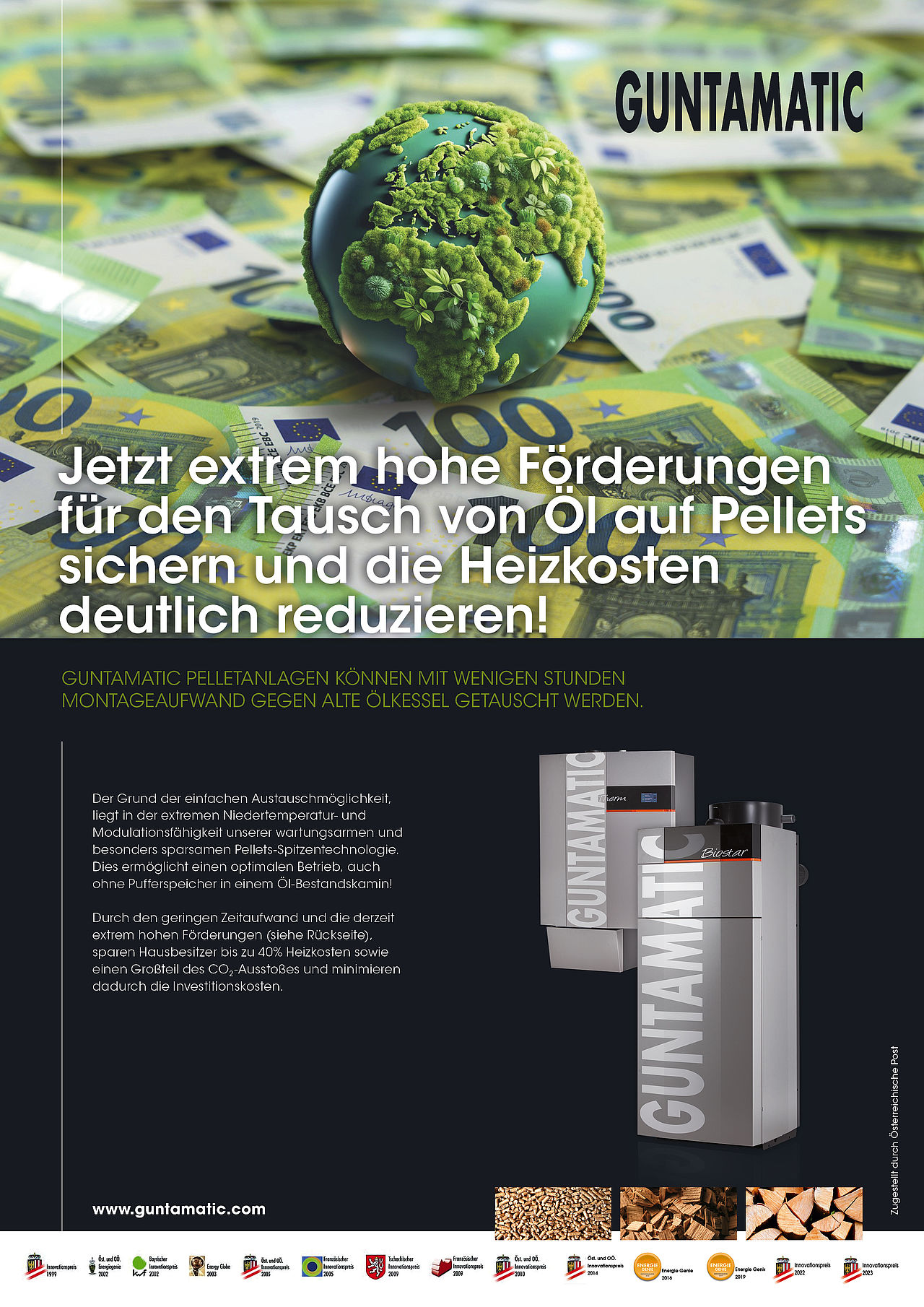 Guntamatic ist ein österreichisches Unternehmen, das seit 1963 innovative Heizlösungen wie Pelletheizungen, Hackschnitzelheizungen und Hybridheizungen anbietet. Diese Systeme zeichnen sich durch hohe Energieeffizienz und Umweltfreundlichkeit aus. Besonders hervorzuheben ist, dass Guntamatic in den letzten Jahren, trotz der hohen Inflation, die Preise nur geringfügig angehoben hat. Dies zeigt das Engagement des Unternehmens, seinen Kunden auch in wirtschaftlich herausfordernden Zeiten kosteneffiziente und nachhaltige Heizlösungen zu bieten. Guntamatic setzt zudem auf moderne Brenntechnologien und intelligente Steuerungssysteme, um den Komfort und die Energieeffizienz zu maximieren.